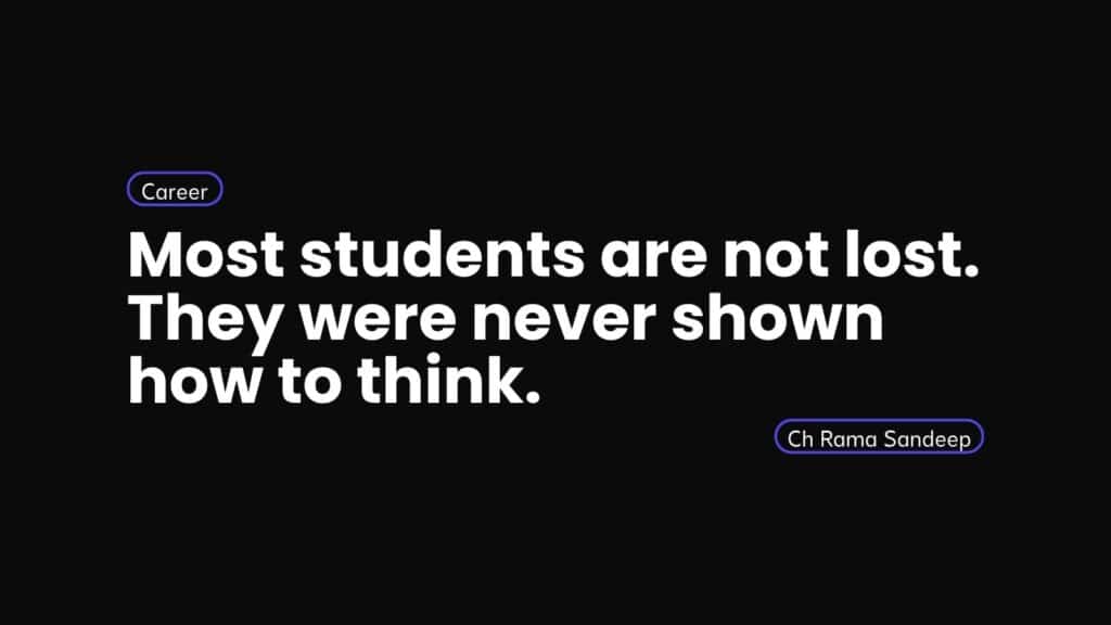 This confusion is not a failure. It is the first real moment where you are forced to think for yourself. But most students don’t know how to handle it. They start reacting instead of thinking. They jump into courses, certifications, trending skills, and random learning paths. Without direction, even hard work becomes noise. You can spend months learning something and still feel stuck. Not because you are lazy. Because you are moving without clarity.